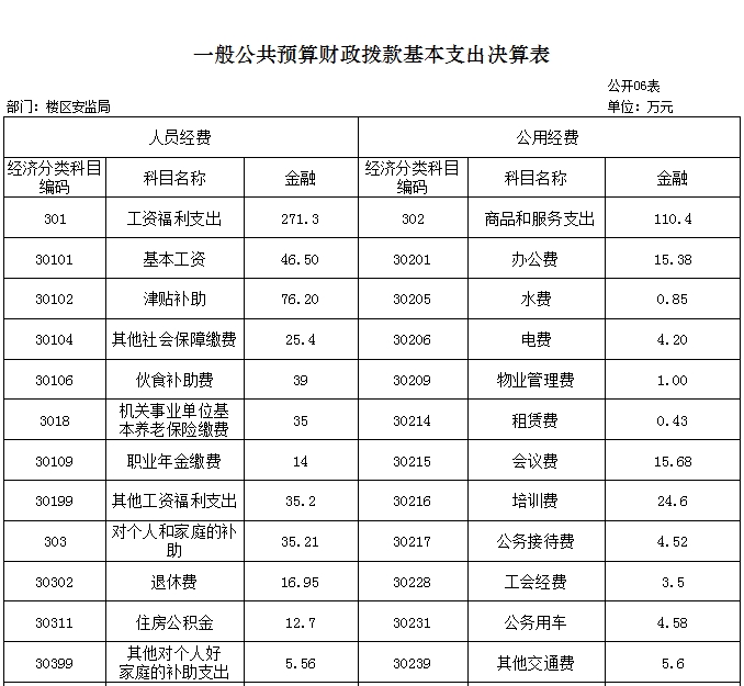 六、一般公共预算财政拨款基本支出决算表