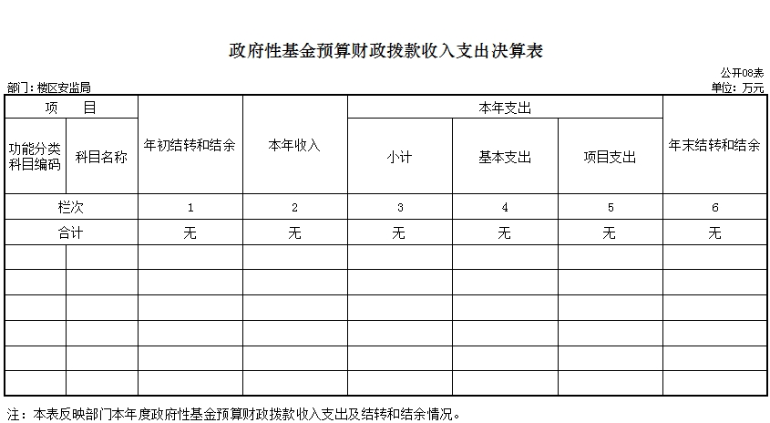 八、政府性基金预算财政拨款收入支出决算表
