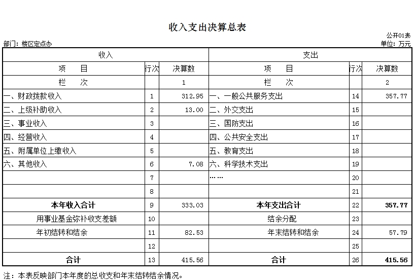 本年度总收入为333.03万元,其中公共财政拨款312.95万元,事业类收入20万元.总支出为357.77万元.
