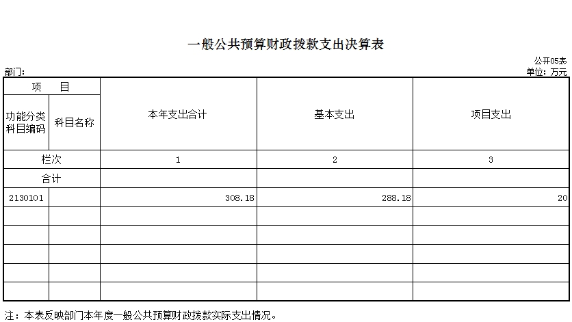 财政拨款支出308.18万元,其中基本支出288.18万元 ,项目支出20万元