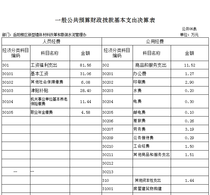 从决算单位构成来看,岳阳楼区新型墙体材料改革和散装水泥管理办公室部门决算只包括部本级决算。