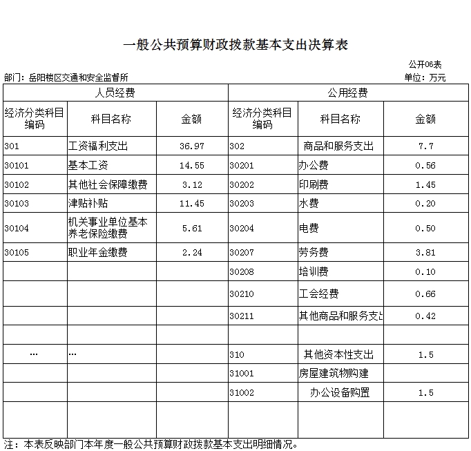 岳阳楼区交通和安全监督所财政拨款支出与年初预算数相同,无增减
