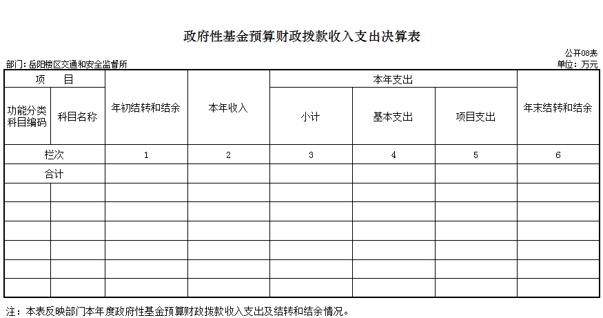 八、关于岳阳楼区交通和安全监督所单位2016年度政府性基金预算收入支出决算情况