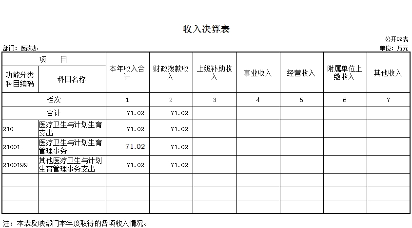 本年度总收入为71.02万元,全部为财政补助收入,占比100%。
