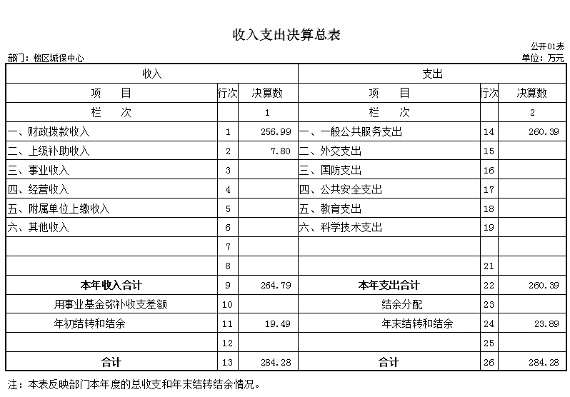 3)结余情况:年初结转结余19.49万,累计年末结转结余23.89万元。