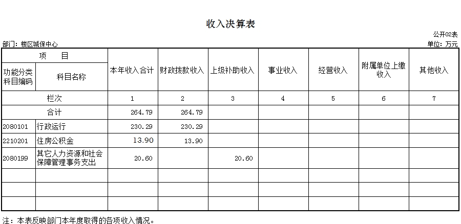 1)收入情况:2016年总收入为264.79万元,其中:财政拨款收入256.99万元,其他收入7.8万元。