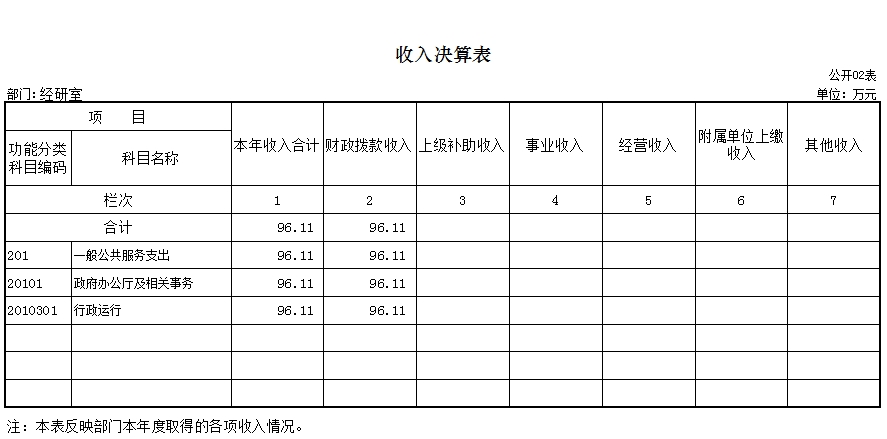 2016年总收入为96.1万元,其中:基本支出拨款收入66万元占全年总收入的69%,项目支出拨款收入30.1万元占全年总收入的31%。