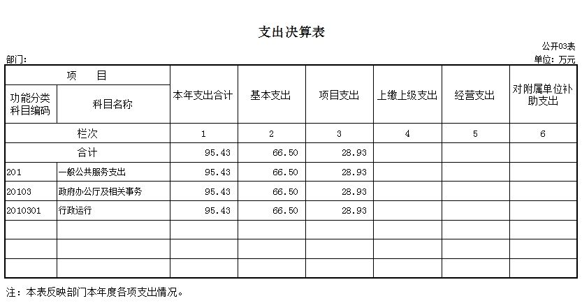 2016年全年总支出为96.1万元,其中:基本支出66.5万元,占总支出70%的,项目支出28.9万元占总支出的30%。