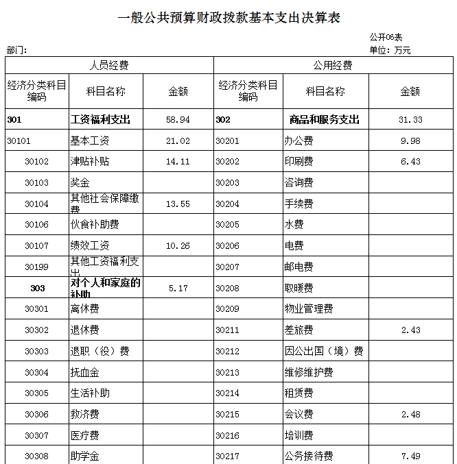 2016年财政拨款基本支出为:66.5其中工资福利支出50.9万元,商品和服务支出11.1万元,对个人家庭补助支出5.2万元。