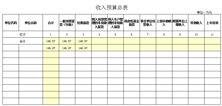 预算总收入146.87万元,其中:经费拨款146.87万元。