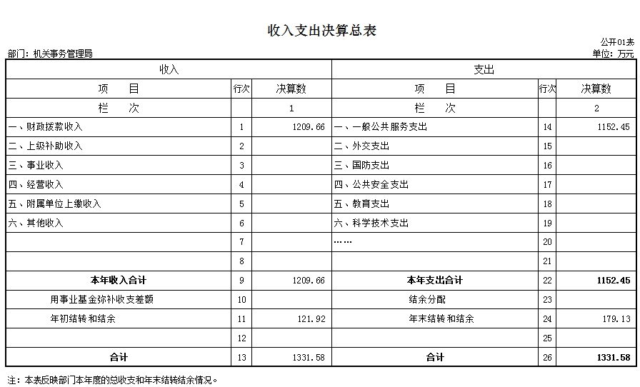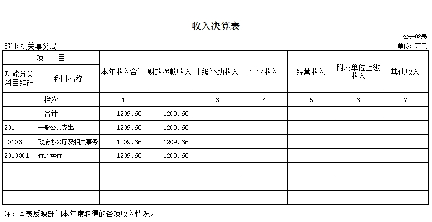 机关事务局2016年总收入1209.7万元,总支出1152.4万元。2015年总收入1221.2万元,总支出1119.2万元。