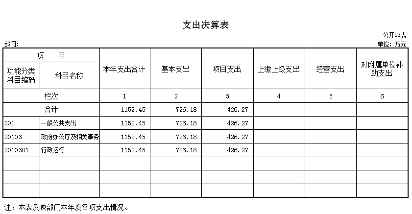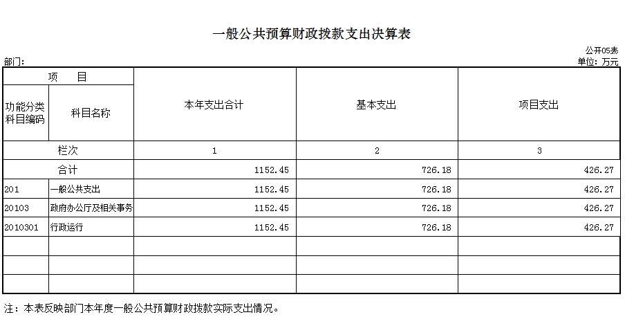 2016年全年总支出为1152.4万元,其中:基本支出726.2万元,占总支出63%的,项目支出426.3万元占总支出的37%。