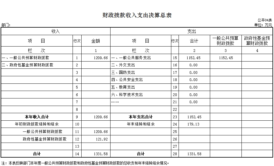 2016年财政拨款总支出为1152.4万元。2015财政拨款总支出1119.2万元。