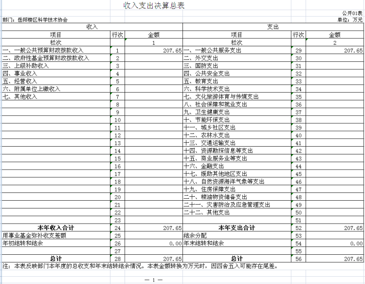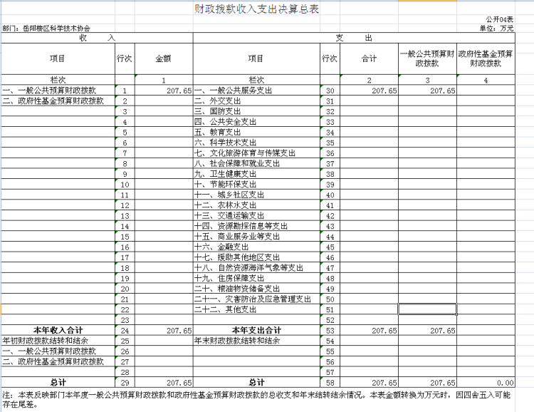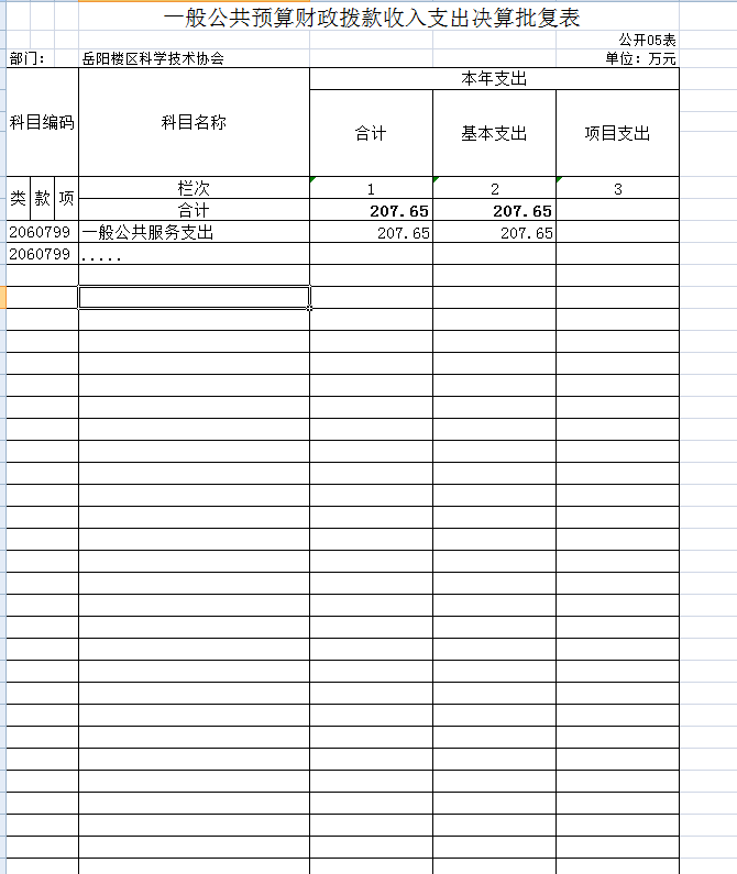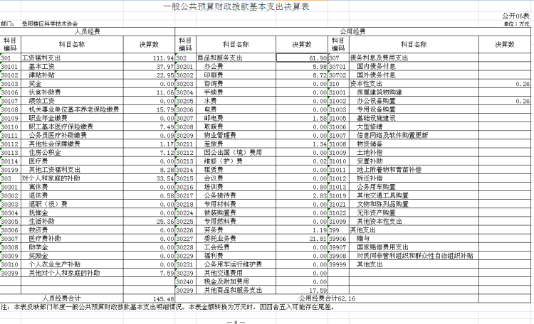 第二部分 岳阳楼区科学技术协会2019年度部门决算表