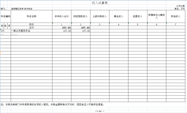 2019 年度收入共计207.65万元。与2018年相比,减少14.56万元,减少7.01%,主要是厉行节约。