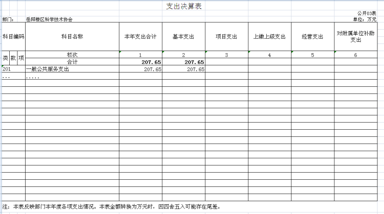 1、一般公共服务支出(类)其他一般公共服务支出(款)其他一般公共服务支出(项)。年初预算为193.81万元,支出决算为207.65万元,决算数大于预算数的主要原因是按照人均科普经费文件要求项目经费调整。