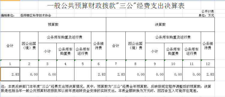 七、关于岳阳楼区科学技术协会单位2019一般公共预算财政拨款三公经费支出决算情况说明