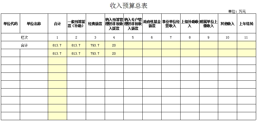预算总收入813.7万元,其中:经费拨款793.7万元;纳入预算管理的非税收入拨款20万元。