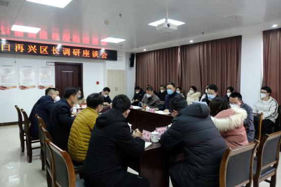 12月30日下午,区委副书记、区长白再兴来到汇城发展集团有限公司,与公司全体干部职工座谈,调研公司建设运营情况。区委常委、常务副区长亓磊及相关部门单位负责人参加。