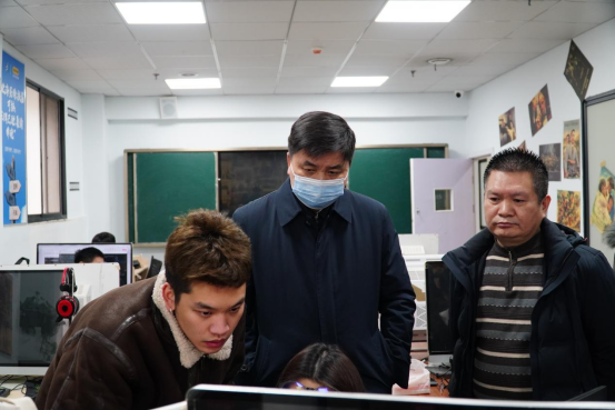 在岳阳楼街道湖南源设动漫设计有限公司,曾平原参观了丰富的应用动漫产品,详细了解了与湖南民族职业学院动漫设计专业校外产业产教融合基地建设情况。