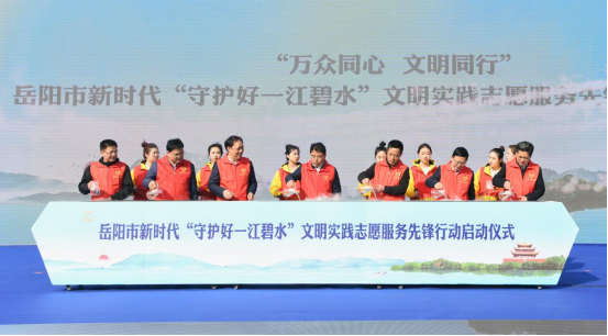 市委常委、市委宣传部部长刘启峰主持启动仪式;市委常委、市委秘书长谢胜为岳阳市“守护好一江碧水”志愿服务大使朱再保授证;市委常委、副市长李美云为“守护好一江碧水”志愿服务总队和支队授旗;市人大常委会副主任赵岳平,市政协副主席张赟为最美志愿者、最美志愿服务工作者、最美志愿服务社区和最佳志愿服务项目、组织颁奖。
