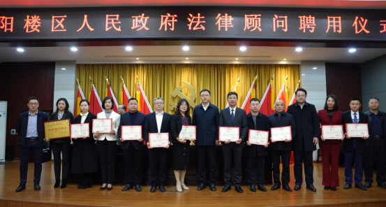 3月24日上午,岳阳楼区人民政府法律顾问聘任仪式举行,11名法学专家、律师和1家律师事务所受聘为区政府法律顾问和顾问单位。区委副书记、区长白再兴颁发聘任书并讲话。区领导亓磊、李丹出席,相关区直单位及各街道(乡)负责人参加。