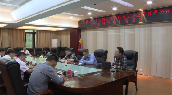 6月3日,区委书记曾平原,区委副书记、区长白再兴同上海浦辰瑞铂科技发展股份有限公司董事长朱谦一行,就洞庭南路历史文化街区项目合作、片区规划、招商引资等工作进行洽谈。区委副书记、宣传部部长胡晓明,岳阳市文化旅游开发有限公司总经理高达乾及相关单位负责人参加会议。