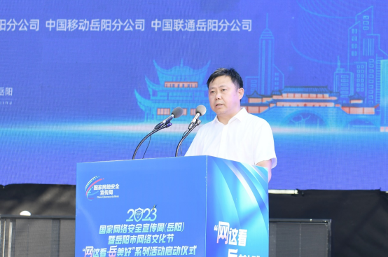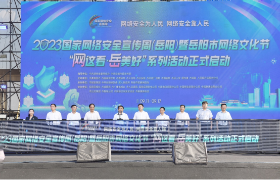 9月7日,2023年国家网络安全宣传周(岳阳)暨岳阳市网络文化节“‘网’这看·‘岳’美好”系列活动启动仪式在岳阳市洞庭南路历史文化街区举行,市委书记、市委网络安全和信息化委员会主任曹普华出席并宣布活动启动。省委网信办副主任郭天保,市委常委、市委宣传部部长刘启峰,市委常委、市委秘书长谢胜,市领导黄俊钧、李劲松、秧励,区委书记曾平原,区领导胡晓明、童六祥参加。