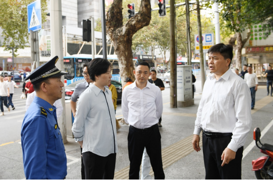 曾平原一行从友谊市场门口步行至柴家山社区新时代文明实践站,沿途认真查看商业街环境卫生、市容秩序、“五小门店”规范经营及环卫宣传氛围等工作,并对空中缆线、牛皮癣、角落垃圾、门店卫生许可证办理等方面存在的问题进行了现场交办。