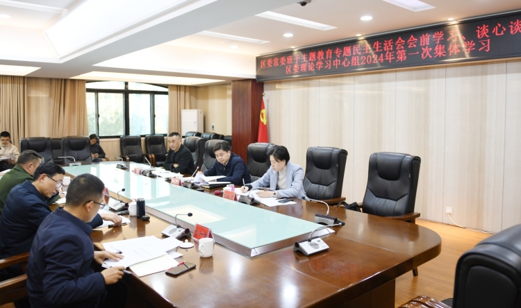 1月11日,区委书记曾平原主持召开区委常委班子主题教育专题民主生活会会前学习暨区委理论学习中心组2024年第一次集体学习。全体在家的区委常委会组成人员参加。