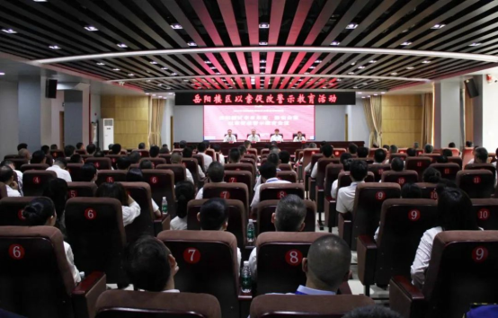 5月8日,在岳阳市纪委监委指导下,岳阳楼区委在岳阳市反腐倡廉警示教育基地召开以案促改警示教育会,认真落实省纪委监委和岳阳市委有关要求,深刻汲取岳阳市卫生健康委员会原党组成员、副主任彭宪会和岳阳楼区人大常委会原党组成员、副主任李亚东严重违纪违法问题教训,以案为鉴、以案促改。岳阳市纪委常委、市监委委员李定出席并讲话,岳阳楼区委书记曾平原作表态发言,岳阳楼区委副书记、区长白再兴主持。岳阳楼区四大家班子成员,法检“两长”,各街道(乡)、区直单位党政主要负责人共198人参加。
