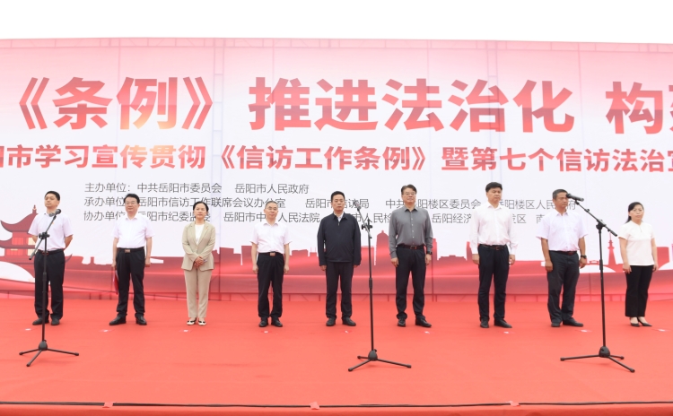 5月31日,学习宣传贯彻《信访工作条例》暨岳阳市第七个信访法治宣传月集中宣传活动举行,市委副书记、市委政法委书记汪涛讲话并宣布活动启动,市级领导李永丰、简龙湘、李胜昔,区委书记曾平原,区领导李水平、黎明、李丹等参加。