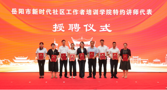 当天,岳阳市新时代社区工作者培训学院为9名特约讲师代表颁发聘书;第一期社区工作者专题培训班开班,100名社区党组织书记参训。(湖南日报)