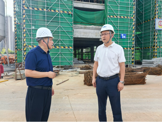 7月18日下午,区委副书记、区长白再兴来到东风湖学校施工现场,实地察看工程进度,了解师资配备、招生办学等情况,一线督导项目建设工作。