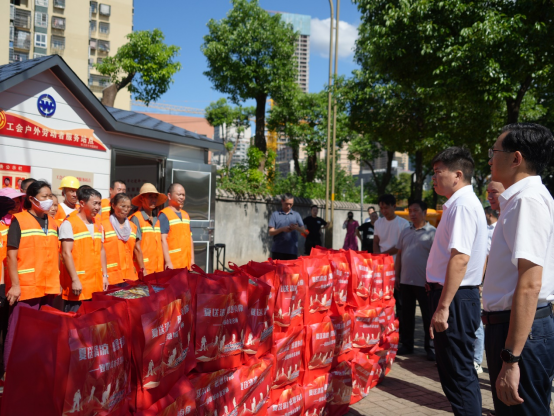 连日来,晴热高温天气持续。7月29日,区委书记曾平原深入一线看望慰问环卫工人,为他们送去防暑降温物品,向广大劳动者致以崇高敬意和衷心感谢。区委常委、副区长邓建华参加。