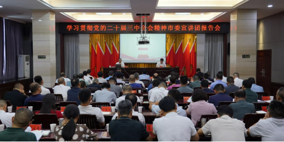 报告会上,易兴建紧紧围绕习近平总书记在党的二十届三中全会上的重要讲话和全会《决定》,从深刻认识党的二十届三中全会的重大意义,深入学习领会习近平总书记在党的二十届三中全会上的重要讲话精神,全面准确理解《决定》提出的进一步全面深化改革重大举措和全力以赴抓好全会精神贯彻落实等方面进行系统宣讲和深入阐释。