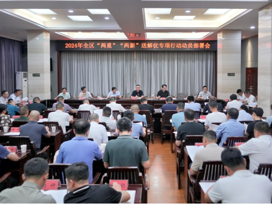 9月6日下午,岳阳楼区召开“两重”“两新”送解优专项行动动员部署会,动员广大干部立即行动起来,主动解放思想、狠抓执行落实,确保专项行动取得最好结果,夺得最优成绩、赢得最优目标,以高质量发展推动省域副中心城市的核心引领区和首善之区建设。区委副书记、区长白再兴出席会议并讲话,全体在家副区长,相关部门和乡镇、街道、管理处负责人参加。