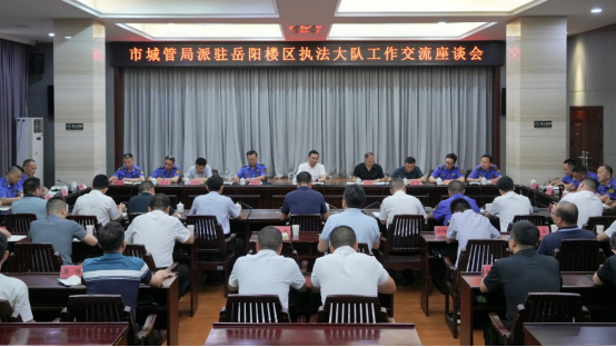 9月12日,市城管局派驻岳阳楼区执法大队工作交流座谈会在我区召开。市城管局党组书记、局长杜宇,区委副书记、区长白再兴,区委常委、副区长邓建华参加,市、区城管系统相关部门单位及各乡镇、街道、管理处负责人参加。
