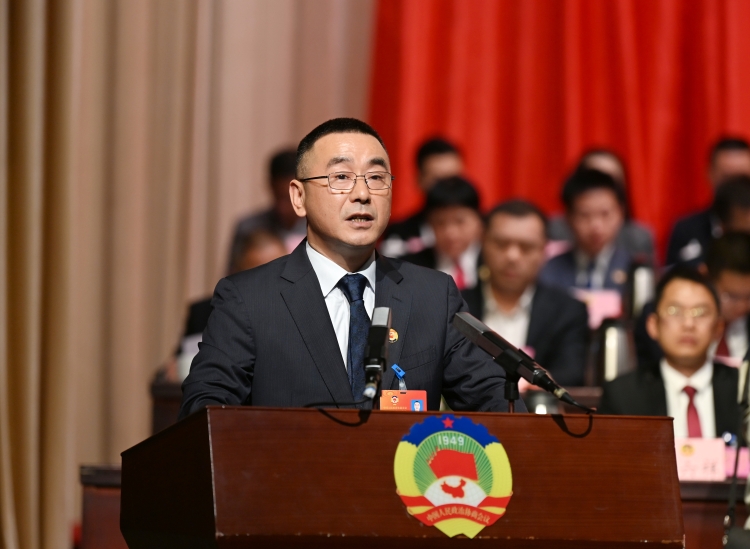 区政协主席黎建欣代表政协岳阳市岳阳楼区第六届委员会常务委员会作工作报告。