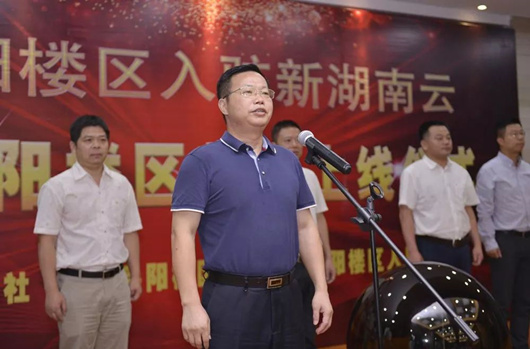 湖南日报社党组成员、副总编辑、新湖南客户端、华声在线总编辑颜斌,湖南日报社岳阳分社社长徐亚平,湖南日报新媒体发展有限公司总经理助理喻志科,区委副书记、区长黄建文,区委常委、区委办主任李峰出席,区委常委、宣传部长王智勇主持上线仪式。