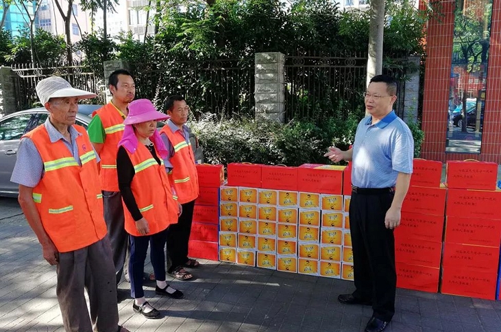 7月18日是“入伏”后第二天,一年里最炎热的日期已经到来。上午,岳阳楼区委书记陈阁辉前往慰问坚持在一线作业的环卫、执法人员,送去党委政府的关心。区领导李峰、王智勇、邓建华参加。