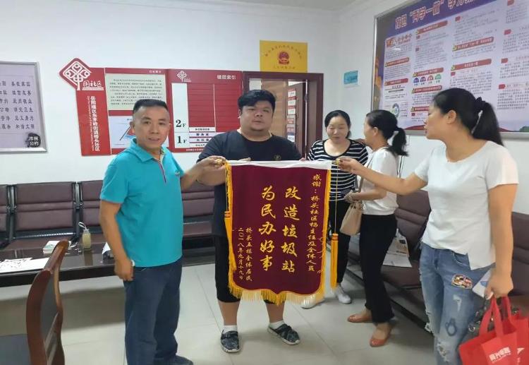 “感谢社区工作人员踏实贴心地帮助我们改造好了垃圾池,让我们的生活更安心!”9月19日上午,田阳贵、谭利平等5位居民簇拥着一面锦旗来到了桥头社区。原来,居住在东茅岭街道桥头社区7组的居民田阳贵和谭利平,于今年8月向社区网格员反映了楼下的垃圾池飘出的阵阵恶臭,难以忍受的情况。网格员经过查看发现该垃圾池设计结构陈旧,容易淤塞垃圾滋生细菌,随即上报社区。社区负责人第一时间安抚居民情绪,并筹集资金改造好垃圾池,解决了令居民头痛的烦心事。据了解,桥头社区是纯居民社区,大部分居民楼没有物业,社区主动作为,成了为居民群众排忧解难的事务部,网格员也成了服务百姓的热心人。(区新闻中心 李磊 桥头社区 张淳茜)