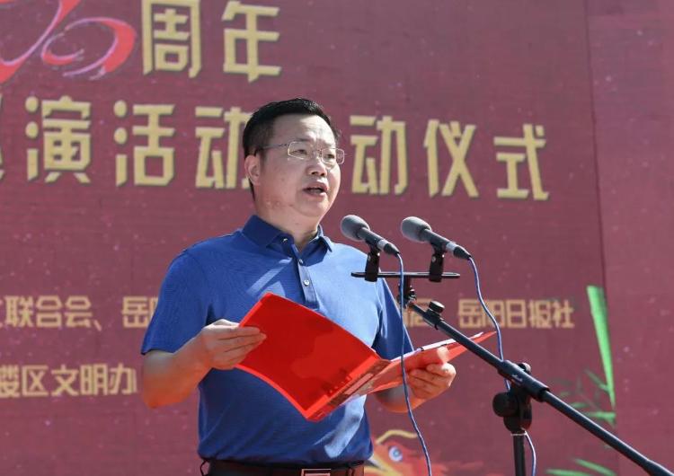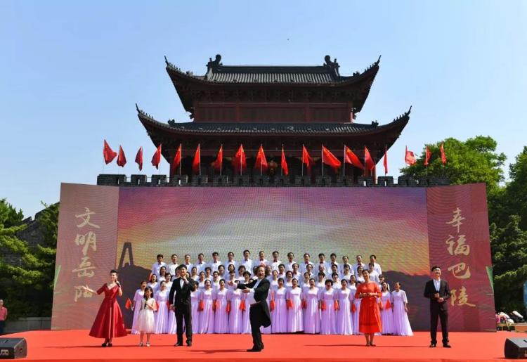 “我和我的祖国,一刻也不能分割,无论我走到哪里,都流出一首赞歌……”6月3日上午,在洞庭湖畔、瞻岳门前处处红旗飘舞,激昂的歌声响彻巴陵广场上空,2019年岳阳市“文明岳阳•幸福巴陵”社区文化节系列主题活动之岳阳楼区庆祝建国70周年“文明新风进社区”文艺巡演活动正式启动。市委常委、宣传部长马娜宣布活动开启,市委宣传部常务副部长许卫国主持启动仪式,区委书记陈阁辉致辞,区领导李峰、王智勇、唐露尧以及来自各行各业的道德模范代表、志愿者代表共1000余人参加活动。