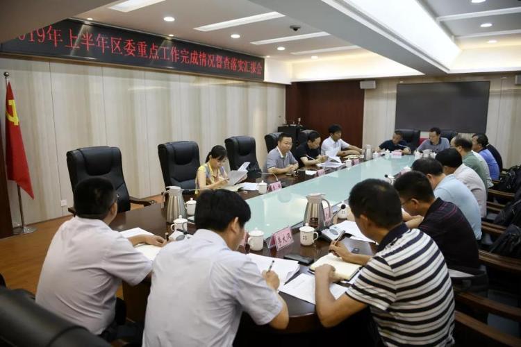7月2日上午,区委书记陈阁辉主持召开2019年上半年区委重点工作完成情况督查落实汇报会。他强调,推动经济社会全面发展的关键在于抓落实,要紧盯年度目标,务实工作举措,按照既定工作计划稳步推进各项重点工作,牢牢把握重大发展机遇,助推全区快速发展。区领导朱彦翼、李峰、周岳雄及有关负责人参加会议。