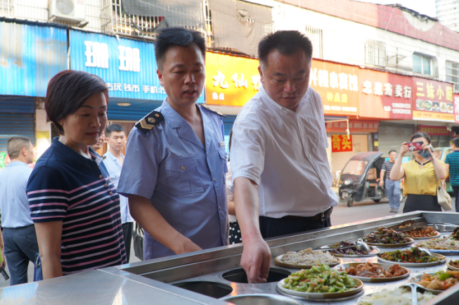 黄建文一行深入学坡社区、区人民医院、九华山拆迁工地、兴盛市场、云山街等地,边走边看,围绕市爱卫迎检领导小组交办的问题整改清单,针对熟食摊位“三防”设施、社区卫生、墙面“牛皮癣”、十乱现象等问题逐一督查,现场交办提出整改意见。