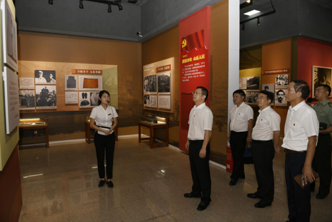 在纪念馆任弼时同志铜像广场前,区委常委会议组成人员举行向任弼时同志敬献花篮仪式。松柏颔首、铜像矗立、“骆驼精神”永存,敬献花篮仪式庄严肃穆。陈阁辉缓步来到任弼时同志铜像前,细细整理花篮绶带,并于任弼时同志铜像下,带领其他区领导重温入党誓词,坚定有力的宣誓声在天空回荡。随后,陈阁辉一行怀着无比崇敬的心情,参观了任弼时纪念馆、文物馆,回顾任弼时同志为民族的独立、人民的解放和新中国的诞生中作出的卓越贡献,追忆任弼时同志一生坚守信念、对党忠诚,艰苦奋斗、负重前行,克己奉公、无私奉献,为党和人民事业鞠躬尽瘁的革命事迹。