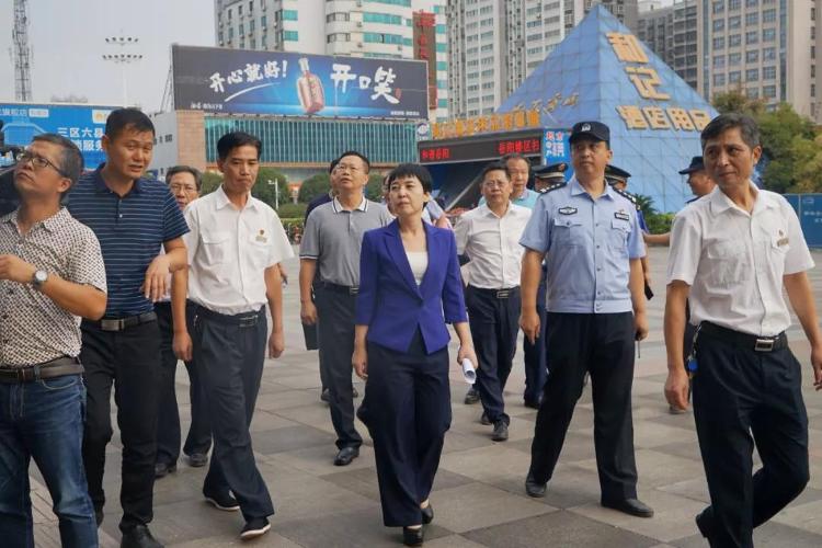 近日,市委常委、宣传部长马娜、副市长黎作凤一行深入主城区等地,现场督查调度文明城市创建工作,相关单位负责人一同前往。区委书记陈阁辉,区委副书记游志坚参加。