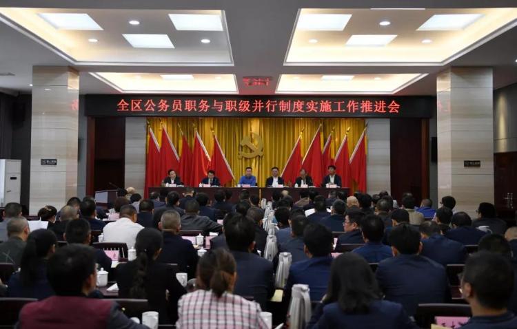 10月17日下午,我区召开全区公务员职务与职级并行制度实施工作推进会,区委书记陈阁辉出席,他强调,实施公务员职务与职级并行制度,是以习近平同志为核心的党中央作出的一项重大决策,对建设忠诚、干净、担当的高素质专业化公务员队伍具有重要意义,要严格落实中央和省委、市委的部署要求,增强政治责任感,深刻领会实施并行制度的功能作用和时代价值,切实把这项工作抓紧抓实抓好抓出成效。区委副书记、区长黄建文主持会议,区领导游志坚、漆胜、朱彦翼、周岳雄等参加。