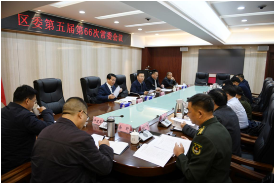 12月5日下午,区委书记陈阁辉主持召开区委第五届第66次常委会议,听取岳阳楼区深化街道(乡)机构改革工作情况汇报、全区主题教育工作暨软弱涣散党组织排查整顿工作情况汇报;安排部署意识形态工作;研究审议并原则通过《岳阳楼区深化街道(乡)机构改革方案(送审稿)》;传达学习习近平总书记关于食品安全工作的重要论述和指示批示摘编、《中共中央办公厅 国务院办公厅印发<地方党政领导干部食品安全责任制规定>》《中共中央 国务院关于深化改革加强食品安全工作的意见》;学习黄文秀同志先进事迹。全体在家区委常委会议组成人员参加。