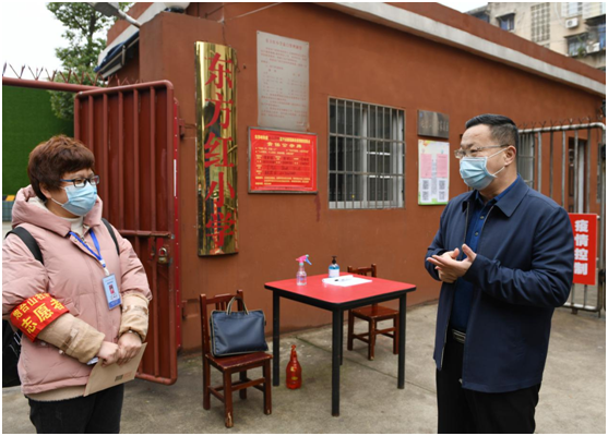 疫情发生后,我区各社区迅速进入战时状态,广大社区网格员们坚守防控一线,充分发挥职能作用。其中,陈珊是东茅岭街道炮台山社区网格员。疫情防控中,她主动承担密切接触者的各项服务工作,每天上门测量体温,送生活物资,进行沟通交流。来到社区,陈阁辉亲切看望陈珊和她的同事们,向大家连日来的辛勤努力和付出表示感谢。陈阁辉说,社区是防控工作的重点,大家不畏艰辛,坚守一线,筑起了社区抗疫坚固堡垒,为我区积极向好的防疫工作形势作出了积极贡献。